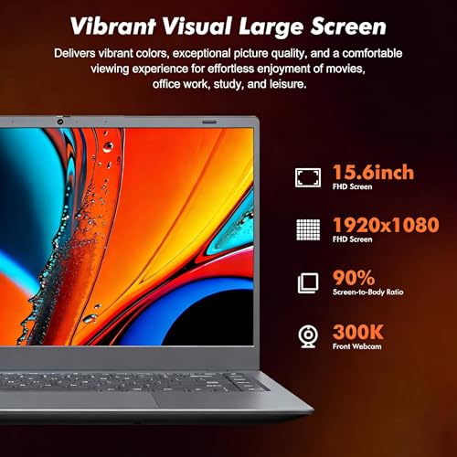 • 【Clear Visual Experience & User-Friendly Design】Comes with a 15.6-inch IPS screen with 1920*1080P full HD resolution, 16:9 aspect ratio and 300nit brightness, delivering sharp images and vivid colors. The quiet fanless design keeps the device silent during use, 170°wide opening angle allows flexible viewing, and the front physical privacy lock effectively protects your personal information from prying eyes.