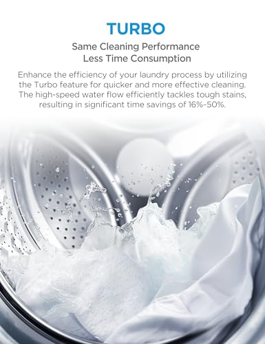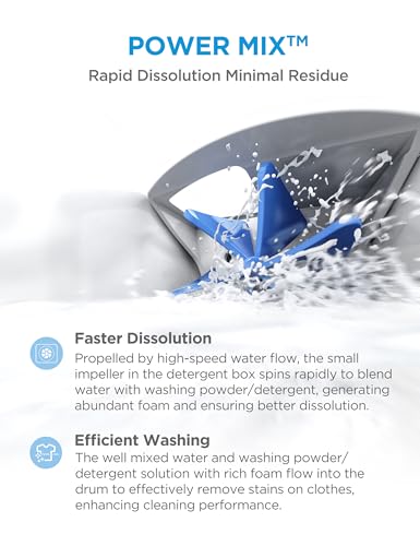 • 【High-Efficiency Wash】Power Mix blends water and detergent for deep stain removal, while Turbo Wash speeds up laundry, saving 16%–50% of washing time