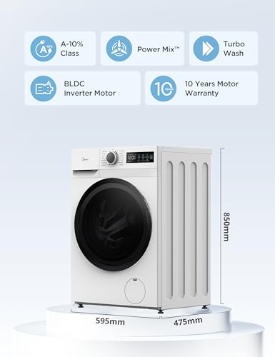 Be the first to review “Midea Freestanding 8 KG Front Load Washing Machine Slim,A-10% Class,Steam Wash,Turbo Quick Wash,Durable Inverter BLDC,1400 RPM,White-MF110W80BA10/W-UK”